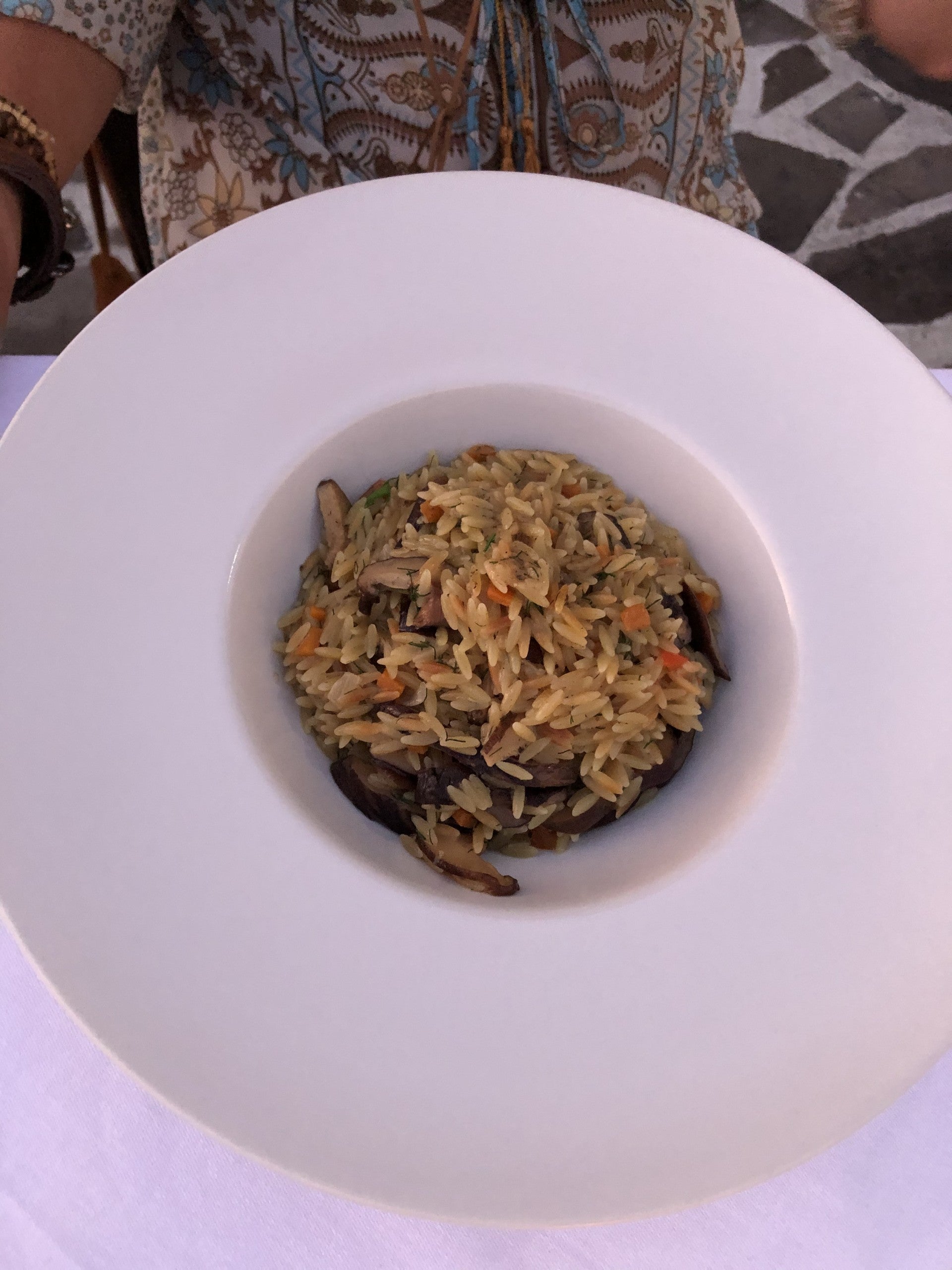 Nu eten bij Byzantio in Merichas, schijnt een van de top restaurants te zijn van het eiland, we laten het morgen weten of dat zo is.