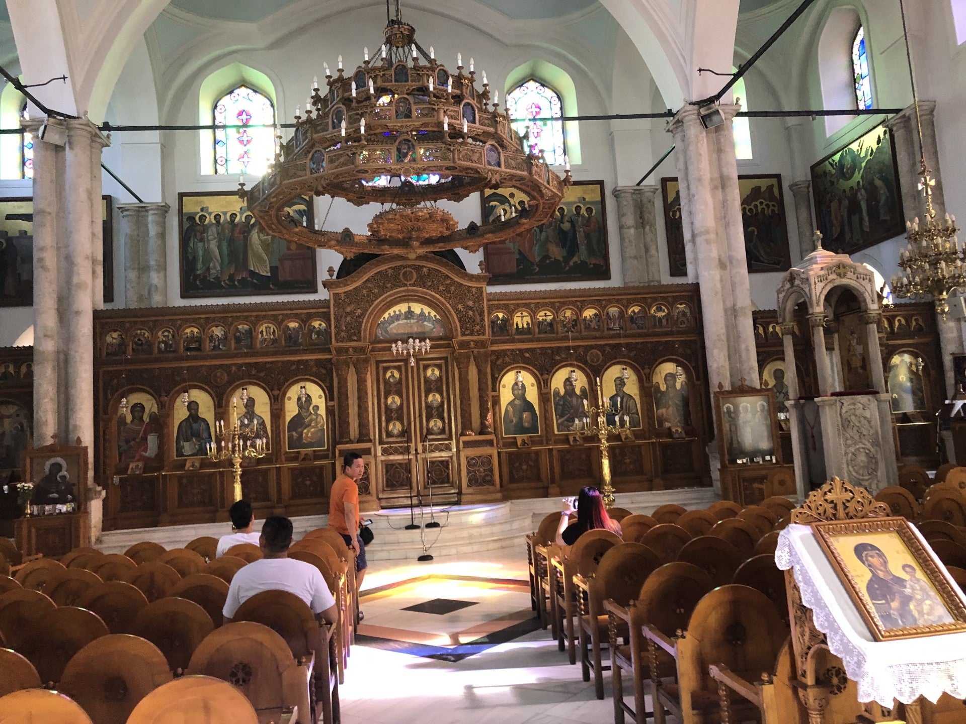 Daar aangekomen, wat een massatoerisme is hier aan de hand, de ferries varen af en aan er liggen drie mega cruise schepen voor de kust en iedereen word op dit eiland gedropt wat een drukte, hoeveel Chinezen en Japanners wil je bij elkaar hebben, hier waren we al voor gewasrschuwd op Milos.