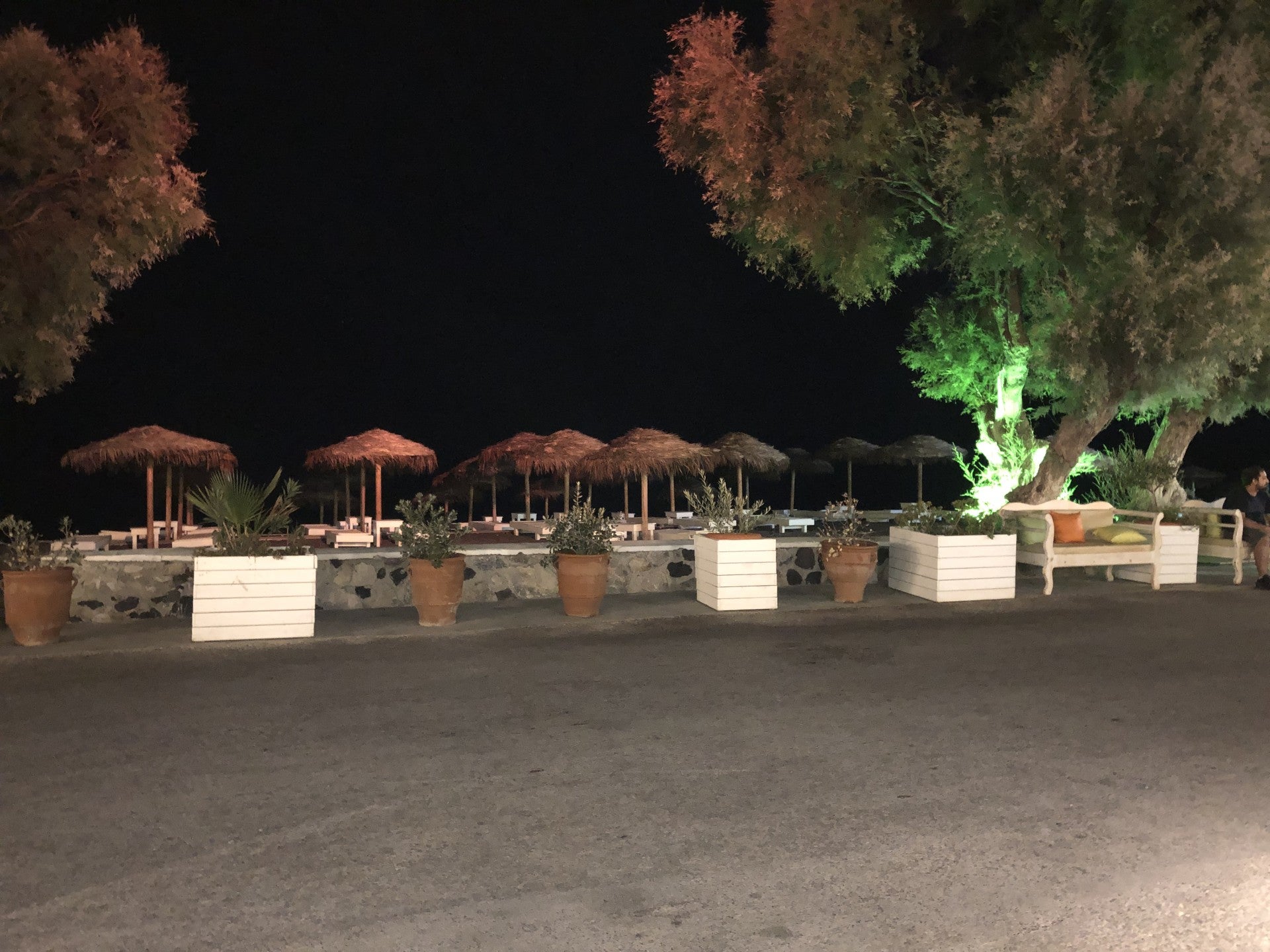 We hebben de taxi genomen naar onze bestemming Perrisa, een plaatsje aan de andere kant van het eiland met een strand van 7 km vol met beachbars restaurants loungeclubs en rijen met ligbedden, hier moet je dus ook niet zijn in het hoogseizoen denk ik zo, maar goed nu is het relaxed en rustig ziet er goed uit allemaal appartement is ook weer dik in orde op 100 meter van het strand.